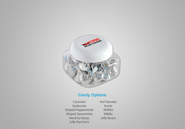A small snack canister is an ideal solution for the candy lover on a budget! Refill the empty canister with your favorite candy or use it to store office essentials. The candy inside will be colorfully visible while the artfully printed lid will showcase your logo with pride. An imprinted snack canister is a great gift since it can be used to hold delightful treats or small storage needs. Whether on display in a cubicle or home office, this 2 7/8" w x 2 7/8" d x 1 7/8" h snack jar builds brand awareness time and again.